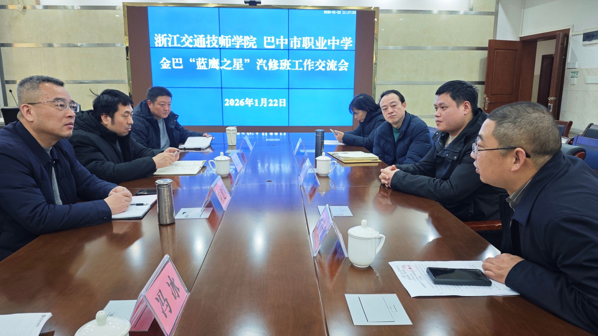 在巴中开展专项工作期间,校领导、教师们共走访了多户学生家庭,不仅带去了学校的问候与学生的成长记录,也聆听了家长的真实心声。为进一步推动“蓝鹰工程”走实做深,家访结束后,两校于1月22日上午举行专题合作座谈会。会上,双方围绕2026年“蓝鹰之星”汽修班的学生选拔标准、培养衔接机制及实习就业导向等进行了务实研讨。针对巴中市职业中学拟开设新能源汽车维修专业的发展规划,双方重点就师资培训、课程体系共建、实训资源协同等方面展开深入交流。浙江交通技师学院将依托在新能源汽车专业上的优势,支持巴中市职业中学开展新能源汽车专业建设,共同打造契合区域发展需要的技能人才培养平台。
